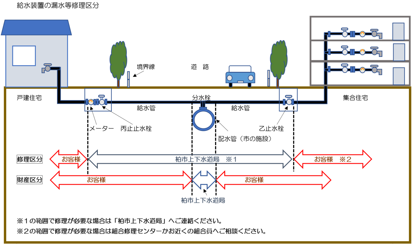 (注意)宅地内の給水管は、お客様の所有物ですので、調査料や工事費等はお客様のご負担となります。